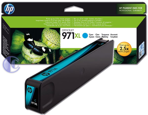 Cartouche jet d'encre grande capacité HP 971XL pour HP OfficeJet Pro X451dw X476dw X551dw X576dw cyan 6.600 pages